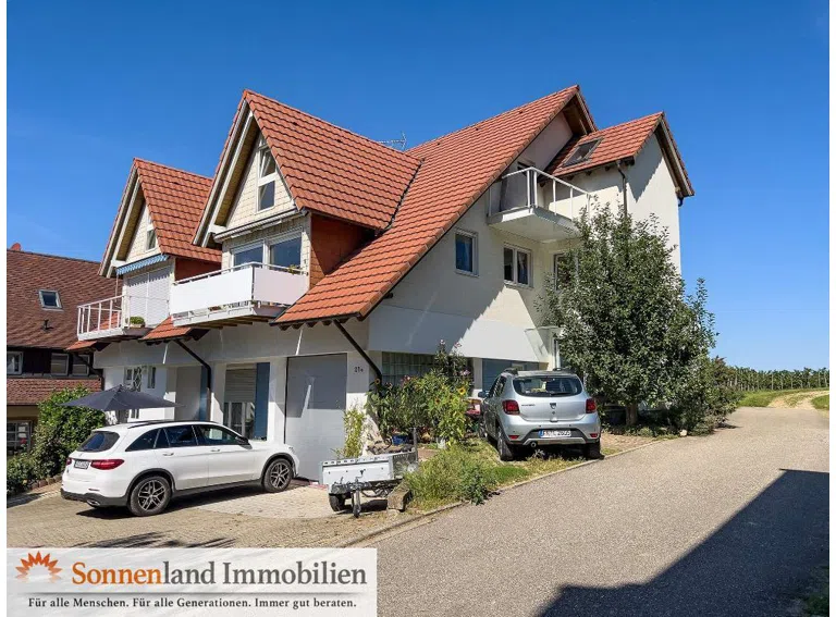 Die Schönbergstraße in Leutersberg (Schallstadt) ist eine Anwohnerstraße ohne Durchgangsverkehr. Sie läuft den Weingberg hoch und die Häuser sind Terrassenförmig entlang der Straße aufgebaut. Dadurch hat man von Leutersberg einen schönen Blick über die Rheinebene und die benachbarten Weinberge. Die Nr. 27a liegt ca. auf halber Höhe etwas zurückgesetzt an einer kurzen Stichstraße und ist dementsprechend ruhig. Das 4-Familienhaus grenzt direkt an die Weinberge. Die Bahnlinie ist von hier kaum zu hören.